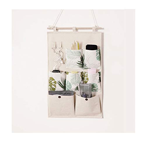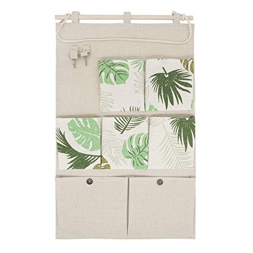 Anzirose Organizer Portaoggetti da Appendere lino e cotone Hanging Storage Bag con 2 Gancio Chiave 7 Tasche - bianca