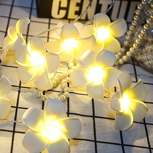ANZOME 20-led string luce bianca artificiale plumeria fiore hawaiano schiuma alimentato a batteria luci per la festa di matrimonio di fata
