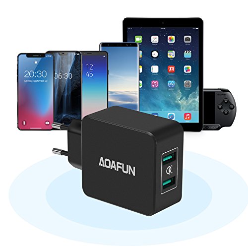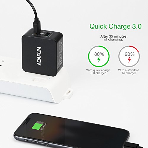 AOAFUN Carica Rapida 3.0, Caricatore da Parete USB 36W (Compatibile con Carica Rapida 2.0) per Galaxy S7 / S6 / Edge/Plus, Nota 5/4, LG G4, HTC One A9 / M9, Nexus 6, iPhone, iPad e Altro (Nero)