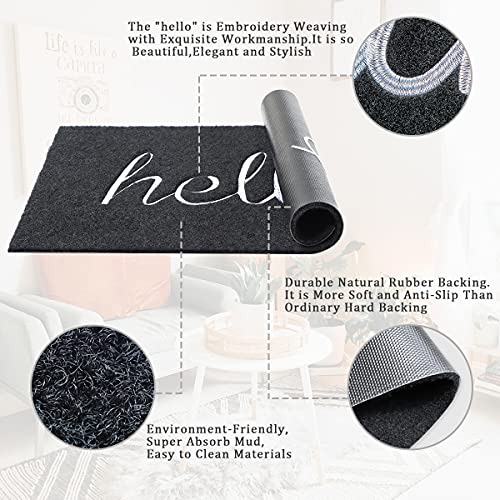 AOAOPQ Hello Zerbino di benvenuto Zerbino per esterni antiscivolo per interni per ingresso anteriore posteriore Zerbini cucina corridoio facile da pulire tappetini ingresso nero