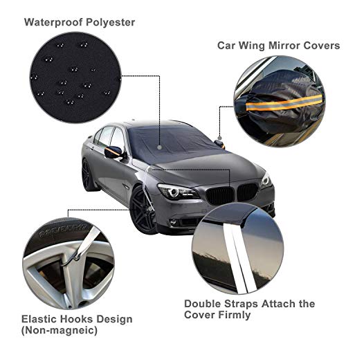Impermeabile e durevole: Copertura parabrezza auto è realizzata in tessuto poliestere 210T denari, che è durevole e impermeabile. Fornisce diverse protezioni per la vostra auto in qualsiasi condizione atmosferica, anche all' aria aperta, risparmiando tempo quando si decide di guida.
