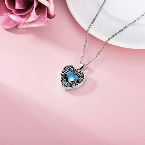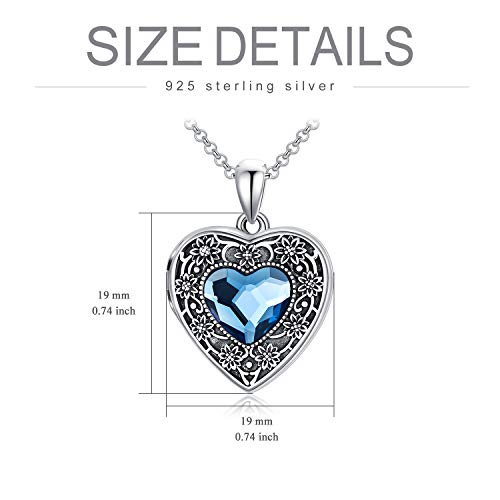 AOBOCO Argento 925 Ladies Love Heart Flower Locket Collana, amuleto medaglione da aprire per le immagini foto, regali per la fidanzata moglie madre