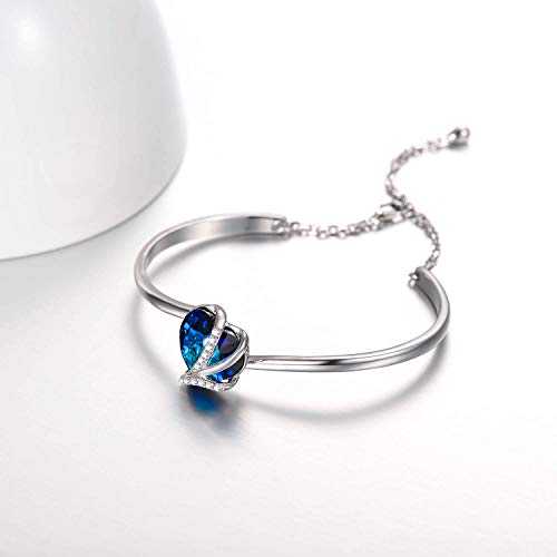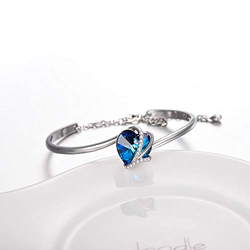 AOBOCO Bracciale Cuore Donna Argento Sterling Bangle Cuore con Cristalli Blu, Compleanno Matrimonio Anniversario Regali per Madre Donne Fidanzata