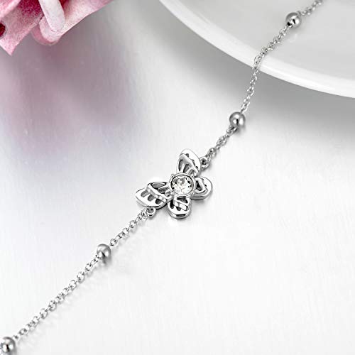AOBOCO Braccialetto in argento Sterling con farfalla e farfalla, regalo di compleanno per donne e ragazze, Cristallo, cristallo