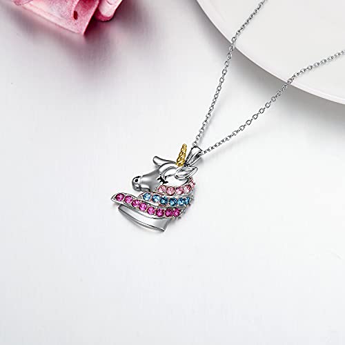 AOBOCO Collana con ciondolo Unicorno in argento sterling con cristalli, gioielli Unicorno Regali di compleanno per ragazze, donne, figlie (multicolore)