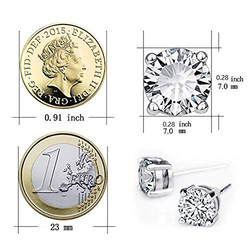 AOBOCO Orecchini da donna in argento 925 placcato oro bianco 18 carati con zirconi, orecchini con diamanti simulati (7 mm placcato oro bianco)