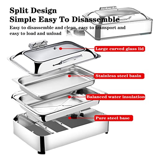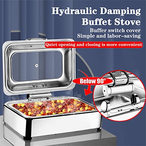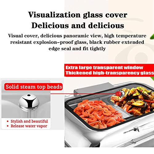 Aocay Chafing Dish Elettrico,Scalda Vivande Elettrico Buffet Visibile Copertura Idraulica,Scaldavivande acciaio inossidabile,Vassoio Inox/Ceramica per Catering Buffet E Party,6l/9l(Color:A,Size:1/1)