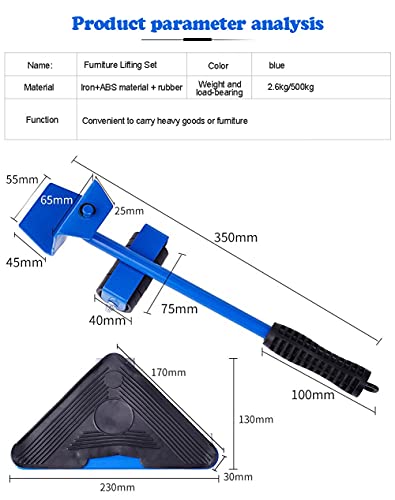 【Alta qualità】 Il sollevatore per mobili pesanti è realizzato in ferro resistente e materiale ABS, pannello con pad antiscivolo e l'impugnatura ergonomica rende lo strumento mobile comodo da usare. Capacità di carico massima: 500 kg/1100 libbre.