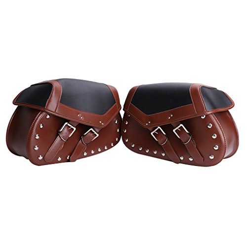 Aochuang universale in pelle marrone con borchie grande moto borse laterali W/Quick Release fibbie