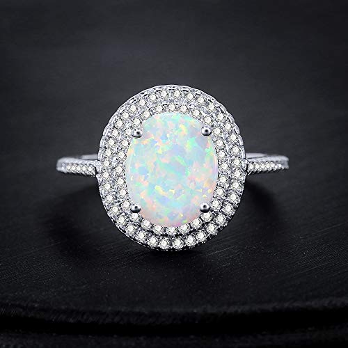 AoedeJ, con Opale di Fuoco in Argento Sterling 925, con pavè CZ Halo Anello Donna Eternity Wedding Band Rings (11,5)