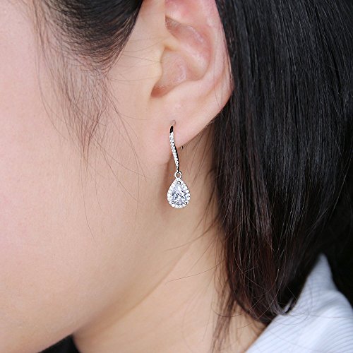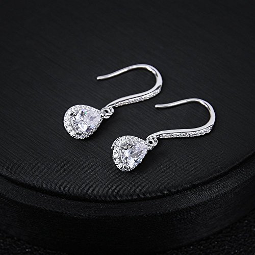 AoedeJ Orecchini pendenti con zirconi cubici a goccia Orecchini pendenti da sposa in argento sterling 925 (lacrima)