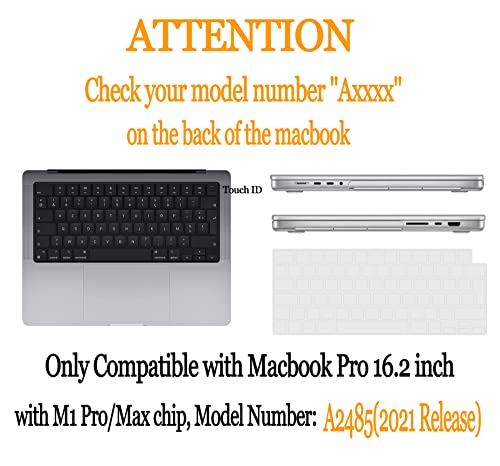 Modello A2485 M1 Pro/Max: questa custodia è compatibile solo con MacBook Pro 16 pollici 2021 versione Modello: A2485 M1 Pro/Max con Touch ID. Non compatibile con altri modelli.