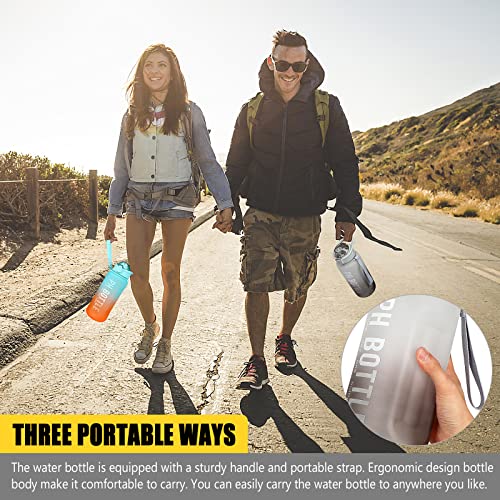 Bottiglia sportiva di grande capacità: 2,2 l di capacità ti assicura di goderti una bottiglia d'acqua piena senza doverla riempire frequentemente. Con scala di misurazione ti aiuta a controllare la quantità effettiva di assunzione di acqua facilmente e chiaramente. L'apertura a bocca larga è facile da riempire con cubetti di ghiaccio o frutta. Con la spazzola per la pulizia bonus e la spazzola per la paglia, puoi pulire rapidamente la tua bottiglia d'acqua. (Nota per l'uso: non per lavastoviglie!)