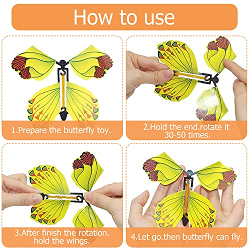 Materiale di alta qualità: la farfalla magica volante è realizzata in cartone, la farfalla magica è piccola e flessibile, ruotare l'elastico in senso orario o antiorario, la farfalla vola liberamente, diversi angeli possono volare in diverse direzioni (volare verso 45 angoli verso il cielo dovrebbe essere il modo migliore).