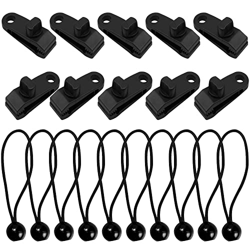 Aohcae 10 tenditori per teloni con sfera e 10 clip per tenda, elastici con sfera, elastici con sfera per tende, teloni, poster, striscioni pubblicitari
