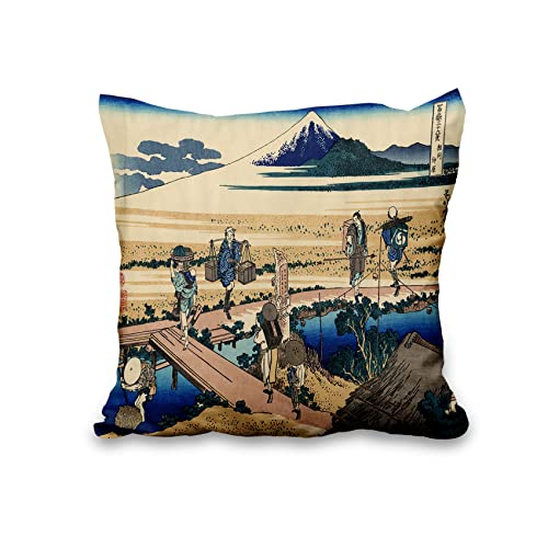 Aoihrraan 55x55cm Set Di 4 Stampa Artistica Giapponese Federe di Cuscini 36 Viste Monte Fuji Vita Morbido Peluche Corto Quadrato Copricuscini Divano Giappone Taverna Sofà Arredo Casa Per Tatami