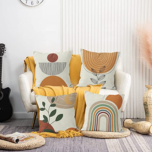 Aoihrraan Fodere per Cuscini Confezione da 4, 46x46cm Sole Arcobaleno Astratto Cuscino Copertine Decorativo Moderno Federa Quadrata, Biancheria Gettare Federe Con Cerniera Invisibile per Divano Auto