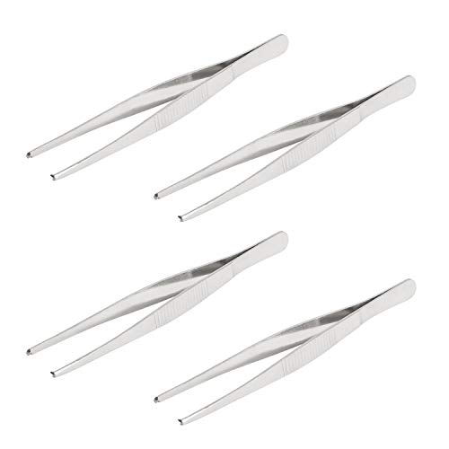 Aoje-Link - Pinzette in acciaio inox, pinzette, pinze, denti di topo, pinze, pinze seghettate, argento, 4 pezzi