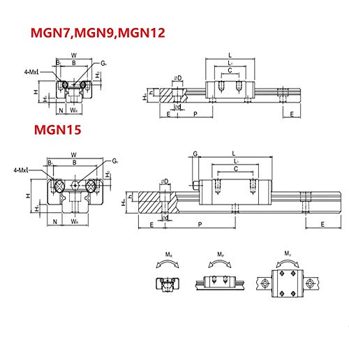 7mm 9mm 12mm 15mm Guida lineare L = 100 200 300 350 400 450 500 550 600 600 Via lineare MGN12C MGN12H MGN7C MGN9C MGN9H Carrariag
