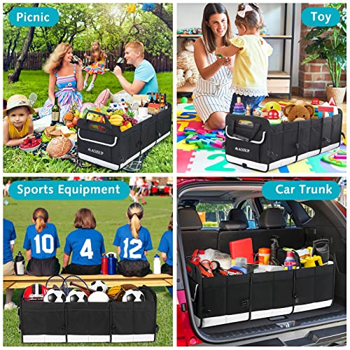 AojSup Organizer Baule Auto, Organizer Bagagliaio Auto Pieghevole Multi-scomparto, XXL Borsa Organizzatore Baule Auto, Organizer Per Bagagliaio Auto Per Auto, SUV, Camion, Minivan(Nero)