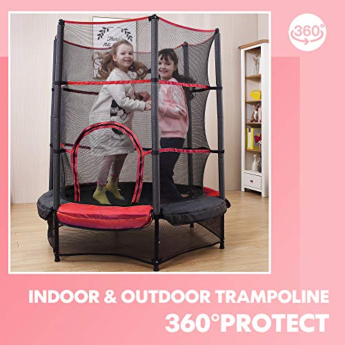 AOKCOS Trampolino Elastico Bambino da interno 1,5 m Trampolino per Bambini da Casa con Rete di sicurezza Piccolo(Rosso) RT137001PR
