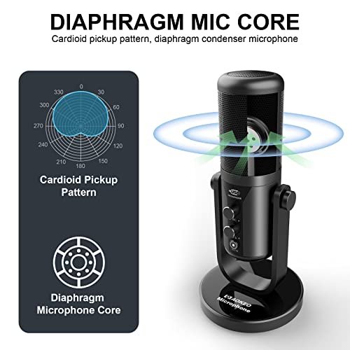 Aokeo Microfono USB a condensatore per PC, computer portatile, telefono, PS4/5, uscita cuffie, controllo del volume, USB tipo C Plug and Play, per streaming, podcast, YouTube, registrazione in studio