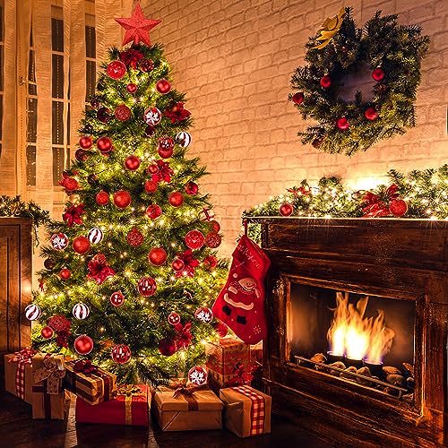 【Pacchetto incluso】contiene 100 palline di natale rosse e 1 pentagramma. 3 diverse dimensioni: 32 palline grandi (2,4''), 24 palline medie (1,5''), 32 palline piccole (1,2''). Ottime per decorare qualsiasi albero di Natale di dimensioni normali. Il set di addobbi natalizi è leggero e non schiaccia i rami del vostro albero di Natale.