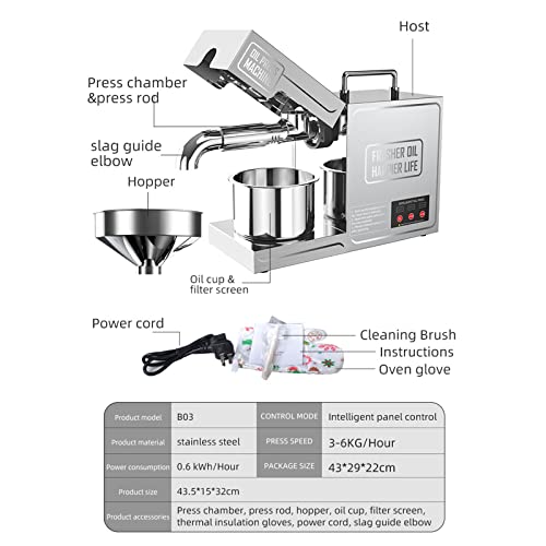 AOKLEY Macchina per la Pressa di Olio,Frantoio Automatico in Acciaio Inossidabile,Macchina per Olio Freddo,Spremiagrumi per La Casa,Estrattore di Olio di Oliva di Girasole,110v