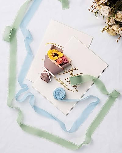 【Dimensioni】Riceverai 3 rotoli di nastro in chiffon di alta qualità, ogni rotolo è largo 2,5 cm e lungo 6 metri, per un totale di 62 piedi di nastro.