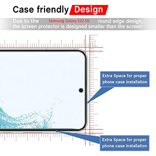 [Ritagli Precisi e Copertura Perfetta] Questa pellicola è stata progettata per proteggere esclusivamente lo schermo di Samsung Galaxy S22. I ritagli laser con bordo arrotondato formano un'apertura precisa per la fotocamera frontale e lo speaker offrendo una precisa copertura allo schermo. Nota: il vetro NON copre l'intero schermo ma solo l'area piatta e ciò lo rende compatibile con la maggior parte delle cover sul mercato.