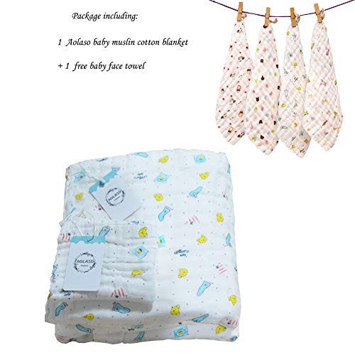 Aolaso - Coperta per passeggino, in mussola, 100% cotone, a sei strati, ultra morbida e assorbente, per bambini, extra large, spesso 110 x 115 cm