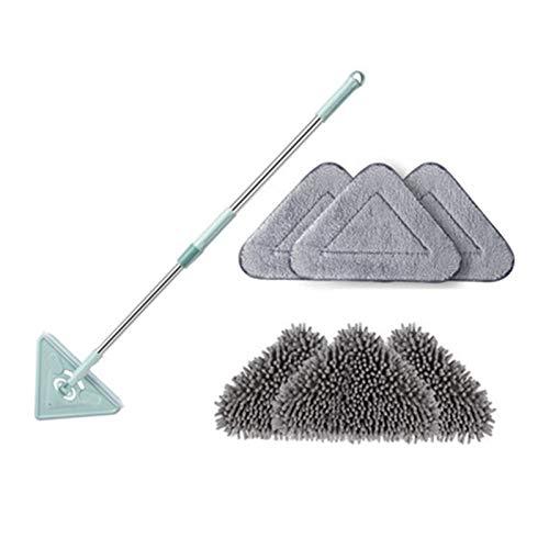 Aoligei Mocio Triangolare Allungabile, Pulizia Ruotabile di 180 ° Mop in Ciniglia, Mocio in Microfibra, Utilizzata per Pulire Tetti, Pareti, Automobili, Angoli6 mop Heads