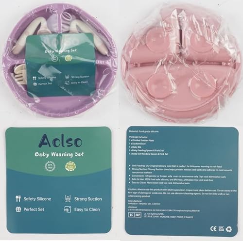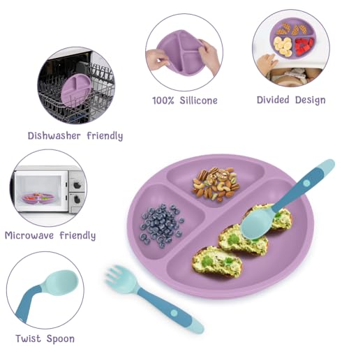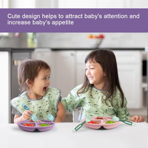 Aolso Piatto con Ventosa per Bambini in Silicone, 2 Set Piatti Bambini Pappa Svezzamento Piatto con 2 Cucchiaio e 2 Forchetta, Piastra di Alimentazione per Neonati, Lavabile in Lavastoviglie