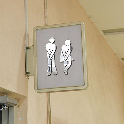 Aolvo WC Sign, in acrilico, con retro adesivo specchio da parete decorativo bagno porta segno, DIY 3D Restroom sticker per uomo e donna hotel bar ristorante universale con scritta "bagno decalcomania Style 1 Silver