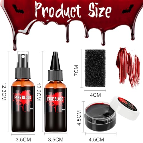 Aomig Halloween Sangue Finto, 4 Pezzi Sangue Finto Liquido Gel Sangue con Spugna, Sangu Finto Sangue Finto Spray per Cosplay di Zombie e Vampiri, Halloween Effetti Speciali Trucco