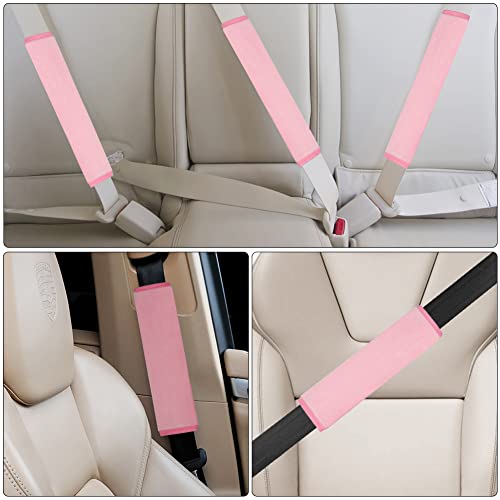 AOMIG Imbottitura Cintura Sicurezza, 2 Pezzi Guaine per Cintura di Sicurezza Cintura di Sicurezza Copertura Auto di Morbidissimo, Auto Copri Cintura di Sicurezza per Adulti e Bambini, Lavabile(Rosa#A)