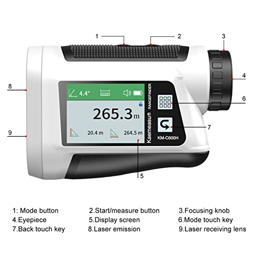 Telemetro portatile da golf multifunzionale: diverse funzioni con distanza, distanza verticale/altezza/angolo, distanza orizzontale/angolo, velocità, altezza a due punti, distanza più breve/lontana, area, volume, 20 set di dati e altro ancora. Ampiamente usato in golf, caccia, edilizia, rilevamento forestale, escursionismo, sport all'aria aperta, rilevamento delle prestazioni, ecc.
