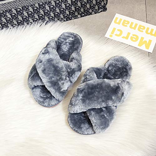 AONEGOLD Pantofole di Pelliccia Donna Invernali Morbido Comode Pantofole da Casa Caldo Peluche Ciabatte con Punta Aperta(Grigio,Taglia 36-37)