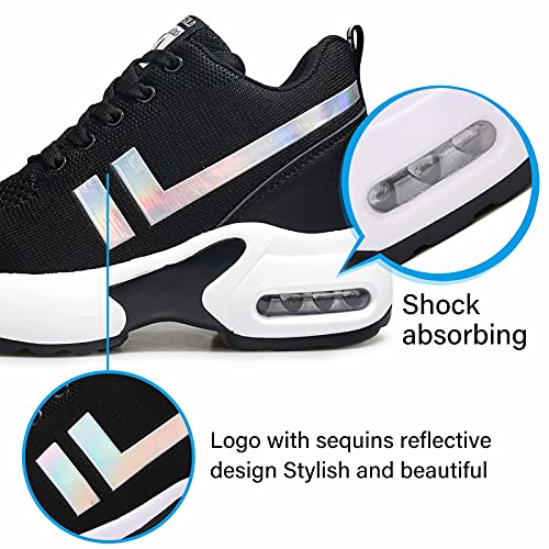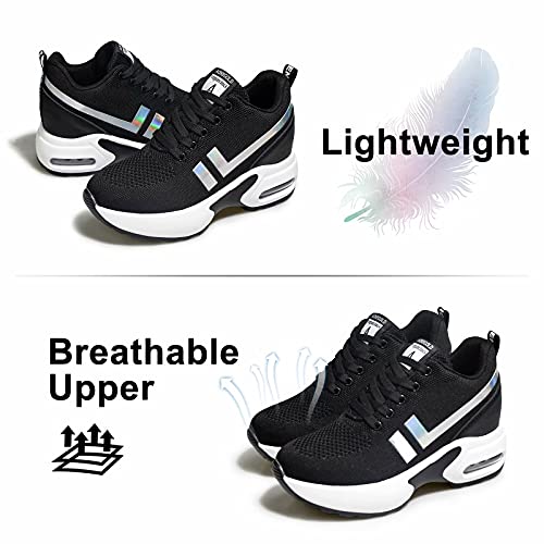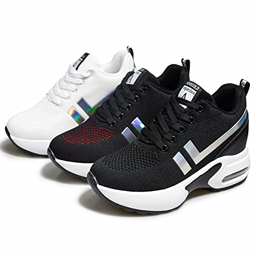 AONEGOLD Sneakers Zeppa Donna Scarpe da Ginnastica Basse Tennis Sportive Fitness Scarpe con Zeppa Interna Tacco 8.5 cm Casual Moda 1298 Nero 35 EU