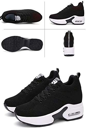 AONEGOLD Sneakers Zeppa Donna Scarpe da Ginnastica Basse Tennis Sportive Fitness Scarpe con Zeppa Interna Tacco 8.5 cm Casual Moda 2786 Nero 40 EU