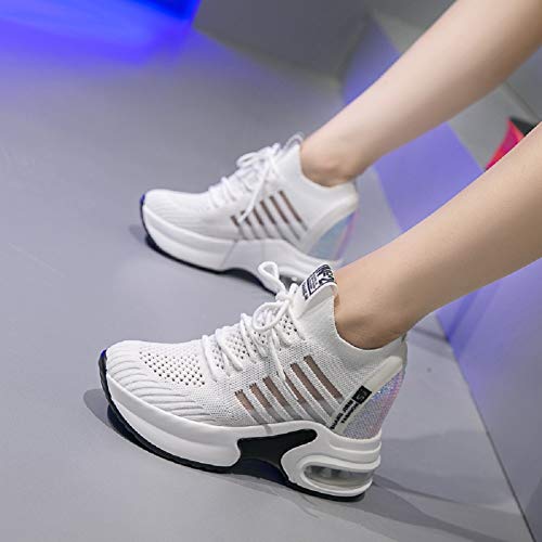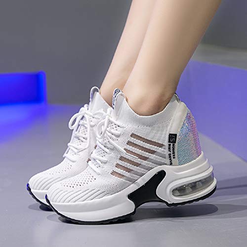 AONEGOLD Sneakers Zeppa Interna Donna Scarpe da Ginnastica Sportive Sneakers Running Basse Sport Fitness Sneakers(12-Bianco,35 EU)