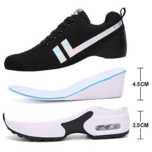 AONEGOLD Sneakers con Zeppa Interna Donna Scarpe da Ginnastica Sportive Casuale Tacco 8 cm(Nero Rosso-1298,34 EU)