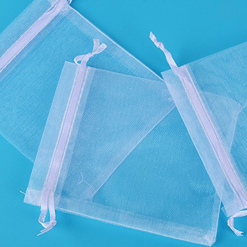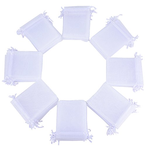 AONER (10 * 12cm) 100pz Sacchetti Bustine Buste in Organza Confetti Portaconfetti Regalo Bomboniere Matrimonio Battesimo Compleanno Festa Confezione Gioielli (Bianco)