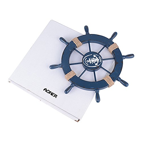 AONER (Dia. 27.5cm) Timone Barca Decorativo in Legno per Decorazione Parete Casa Feste Tema Marino Nautico Mare