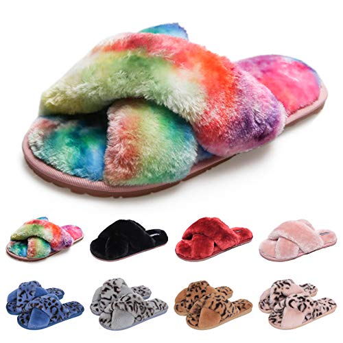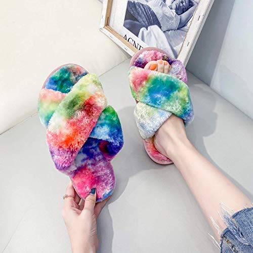 AONETIGER Pantofole da casa per Donna Warmer Peluche Pelliccia Flip Flops Memory Foam Pantofole Antiscivolo Scarpe per Autunno/Inverno(38/39,Colorful)