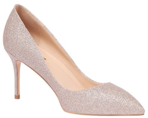 AOOAR Donne Pizzo Dita Classico Ufficio, oro glitterato, 46 EU