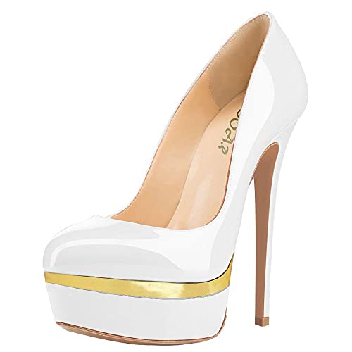 AOOAR - Scarpe da donna da sera con tacco a spillo, Bianco (Pelle laccata bianca e oro.), 42 EU