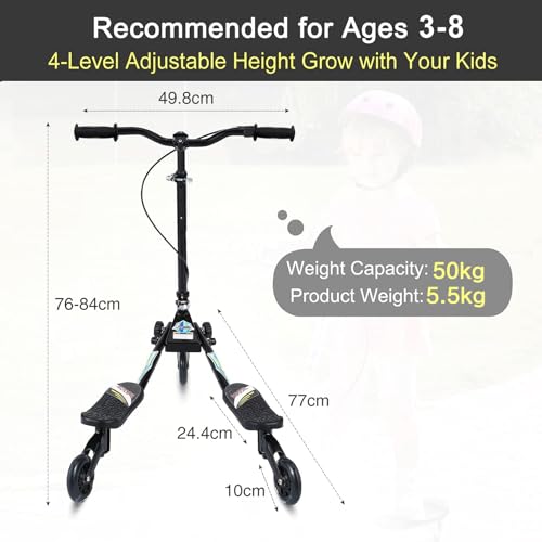 AOODIL Drifting Scooter per Bambini, 3 Ruote Pieghevole Swing Scooter Tri Slider Pieghevole Push Wiggle con Maniglia Regolabile e 2 Ruote LED Posteriori per Ragazzi e Ragazze dai 3 ai 8 Anni