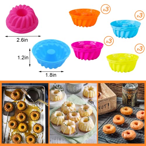 AOOGON 12 Pezzi Stampi in Silicone Muffin, Stampi Riutilizzabili Cupcake, Mini Ciambelle Stampi per Torte, Dessert, Cioccolato, Budino (Style 2)