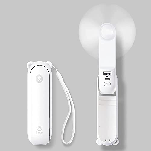 AOOPOO 3 IN 1 Mini ventilatore portatile, piccolo ventilatore tascabile ricaricabile USB, ventilatore a batteria [14-21 ore di lavoro] con power bank,funzione torcia per donne,viaggi,outdoor (Bianca)